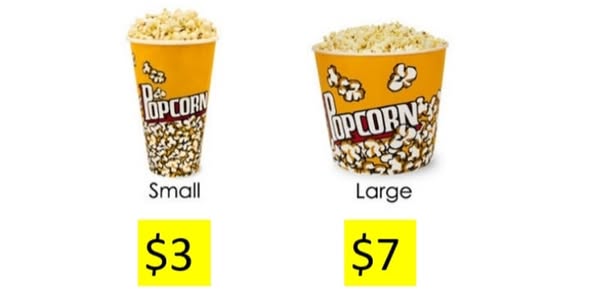 Un clar exemple d’aquest efecte el podem veure amb les crispetes del cinema. Imagina’t que només hi ha dues opcions que son: